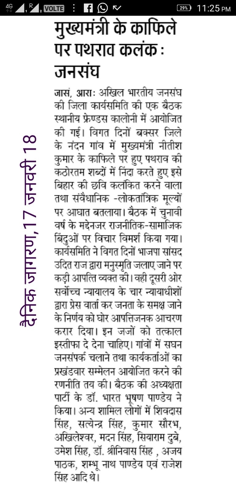 January 17, 2018 राजनीतिक समाचार